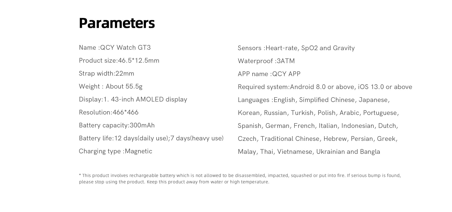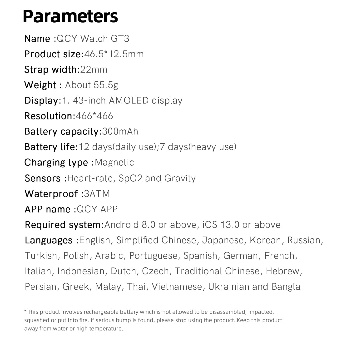 Nom du produit: Montre intelligente QCY Active GT